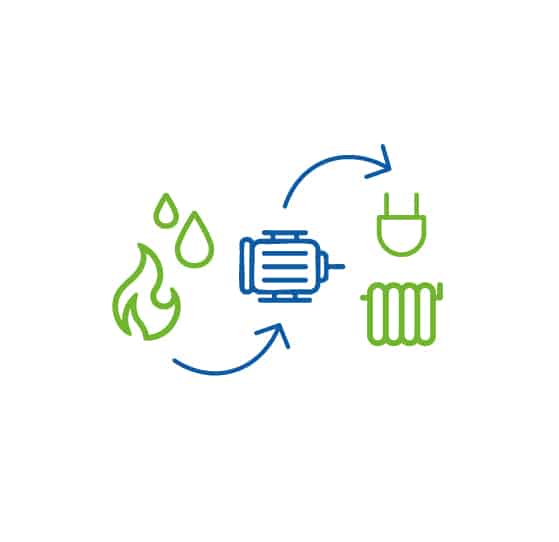 Bei der Verstromung von Biogas entsteht nicht nur Strom, sondern auch Wärme. Diese Kraft-Wärme-Kopplung (KWK) macht Biogasanlagen besonders effizient: Die entstehende Abwärme kann in Nahwärmenetze eingespeist oder direkt für Gebäude, Prozesse und Trocknungsanlagen genutzt werden.