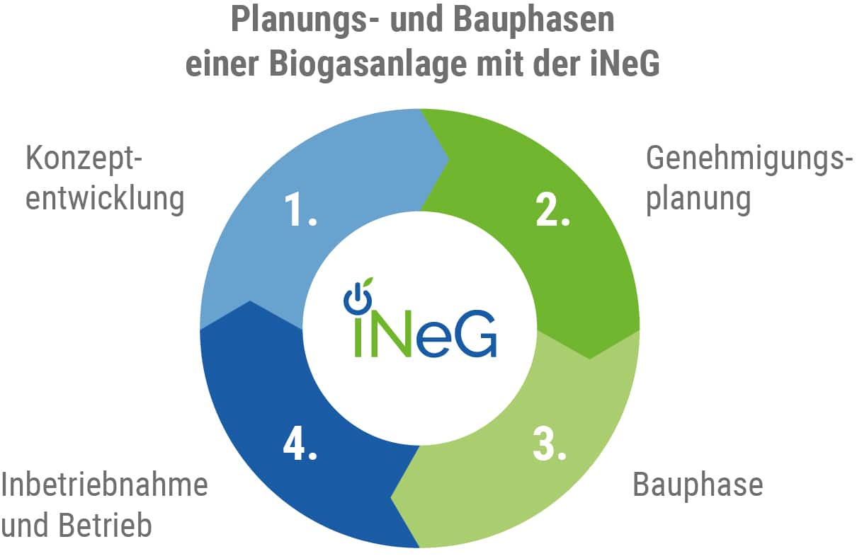 Die Entwicklung einer Biogasanlage beginnt mit einer fundierten Planung. Als regionaler und bundesweiter Partner übernehmen wir von der INEG alle Aufgaben, die im Vorfeld beim Bau einer Biogasanlage notwendig sind.